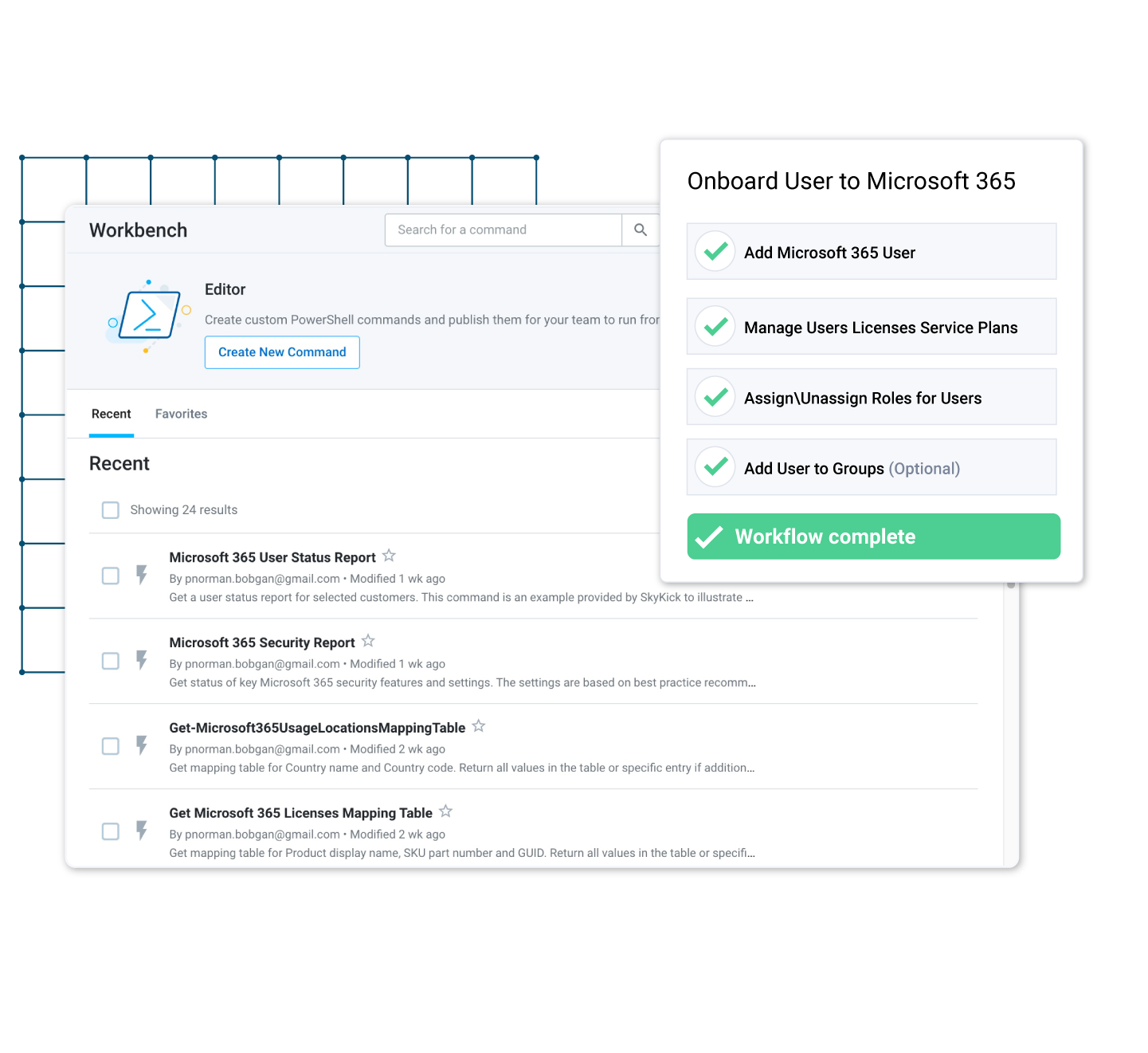 With the cloud automation feature, you can conquer the complexity of managing SaaS, IaaS, and PaaS to streamline your operations and ultimately provide exceptional customer support. You can perform any admin task for any customer, across cloud services from a single pane of glass. Say goodbye to endless browsers, credentials, and portals—with cloud automation it's click, click, done.