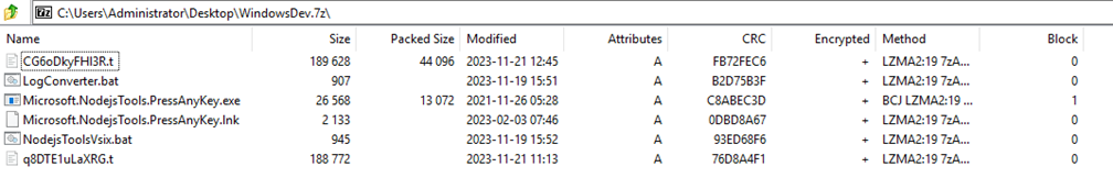 Figure 2: Contents of WindowsDev.7z