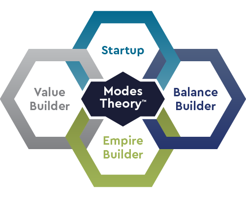 Modes Theory ™ (a.k.a Modes) begins by helping our partners understand and develop their relationship with business growth. With Modes, IT solution providers (TSPs) can determine internal alignment on long-term goals, strategy for business growth, desired outcomes (such as acquisition or exit), and how the business is run. Through interrelated concepts, tools, assessments, and benchmarks, business owners, their teams, and their clients can engineer a resilient and profitable business while still navigating uncertainty and continuous change.