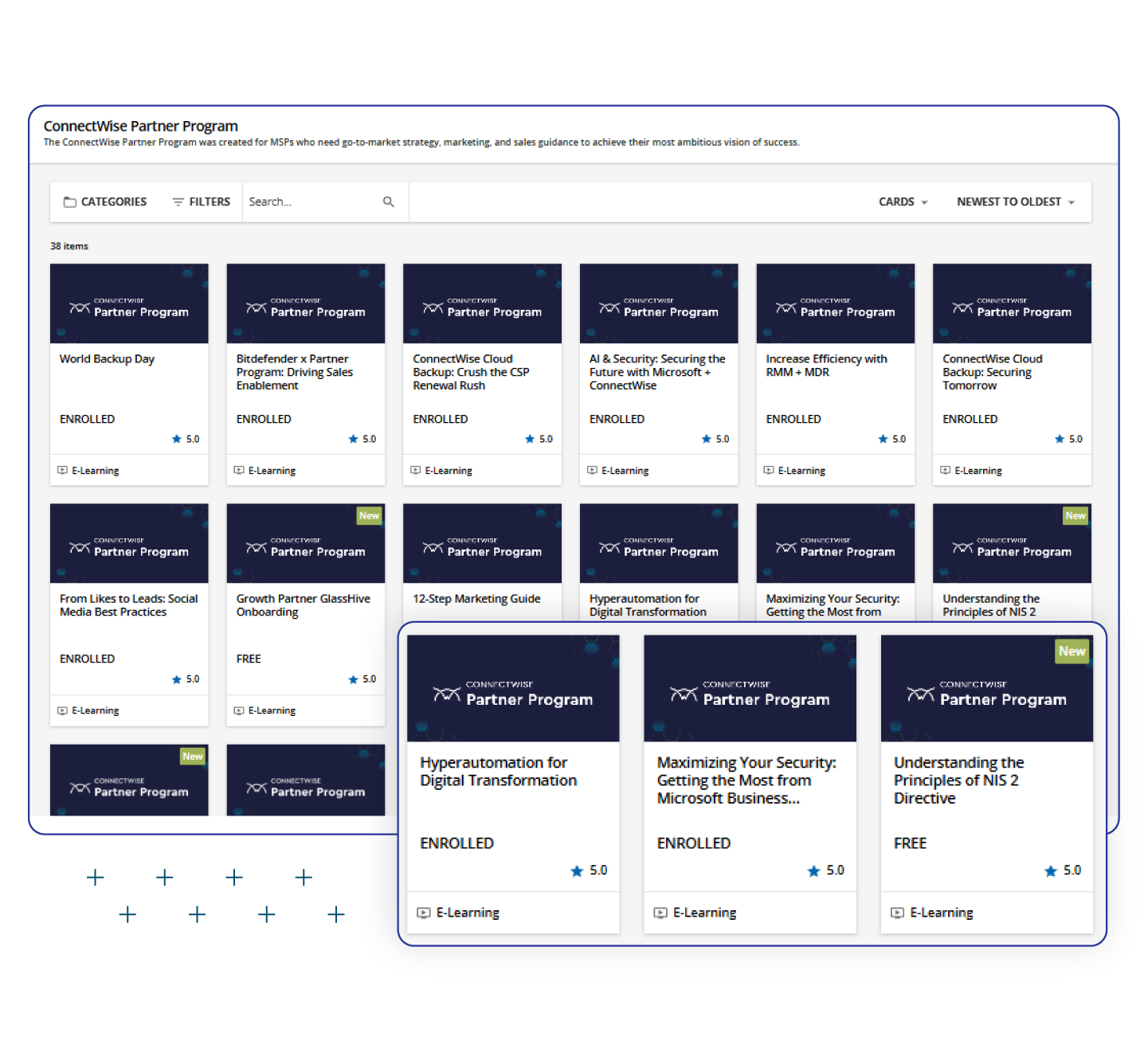 Take advantage of the ConnectWise University™ with educational courses on sales, technical aspects, marketing, and more — all developed to help you learn, grow, and succeed.